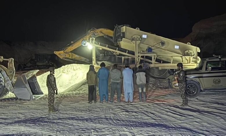 القوات الخاصة للأمن البيئي الذين تم الاستيلاء عليهم (5) سكان ينتهكون النظام البيئي في الجنسيات الباكستانية والهندية والصومالية واليمنية ، لاستغلال الرواسب في منطقة الرياض.